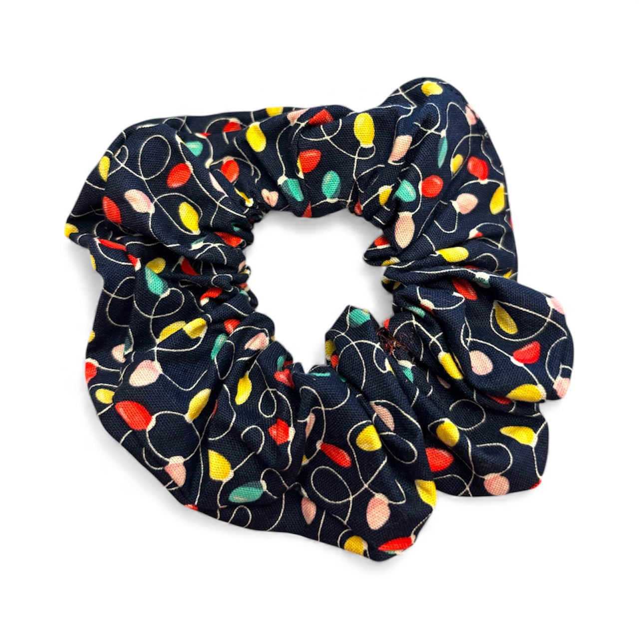 Brighten up your style with the cheerful Christmas Lights Scrunchie! Featuring colorful holiday lights on a dark background, this playful piece adds a spark of joy to any festive outfit. Perfect for parties, gift wrapping days, or cozy nights in.