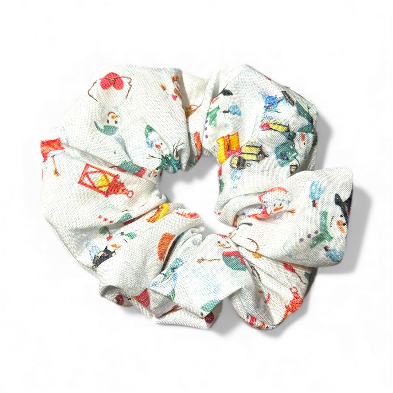 Bundle up your hair with the Winter Whimsy Scrunchie! Featuring snowmen, mittens, and lanterns on a white background, this accessory captures the magic of snowy days and warm winter moments.